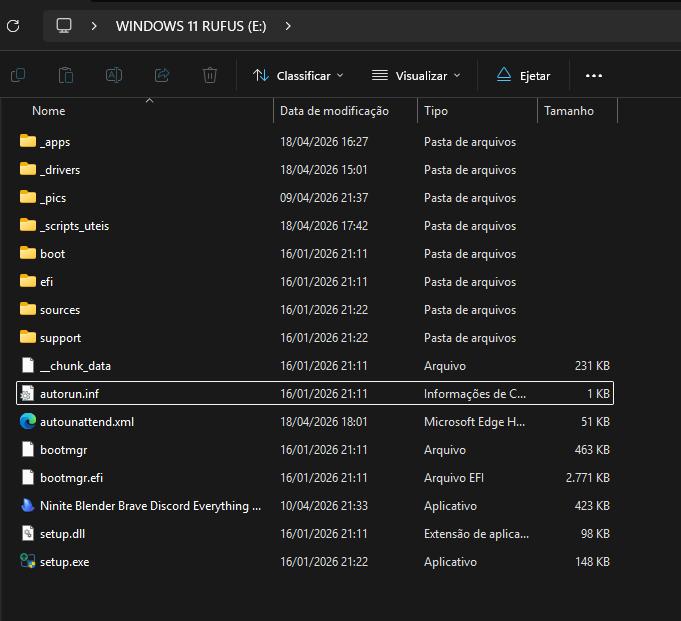 Também faça uma cópia dessa pasta pro seu pendrive bootável do windows 11, na raiz mesmo, nada de mudar de nome nem colocar dentro de outras pastas! Ela precisa ficar intacta!